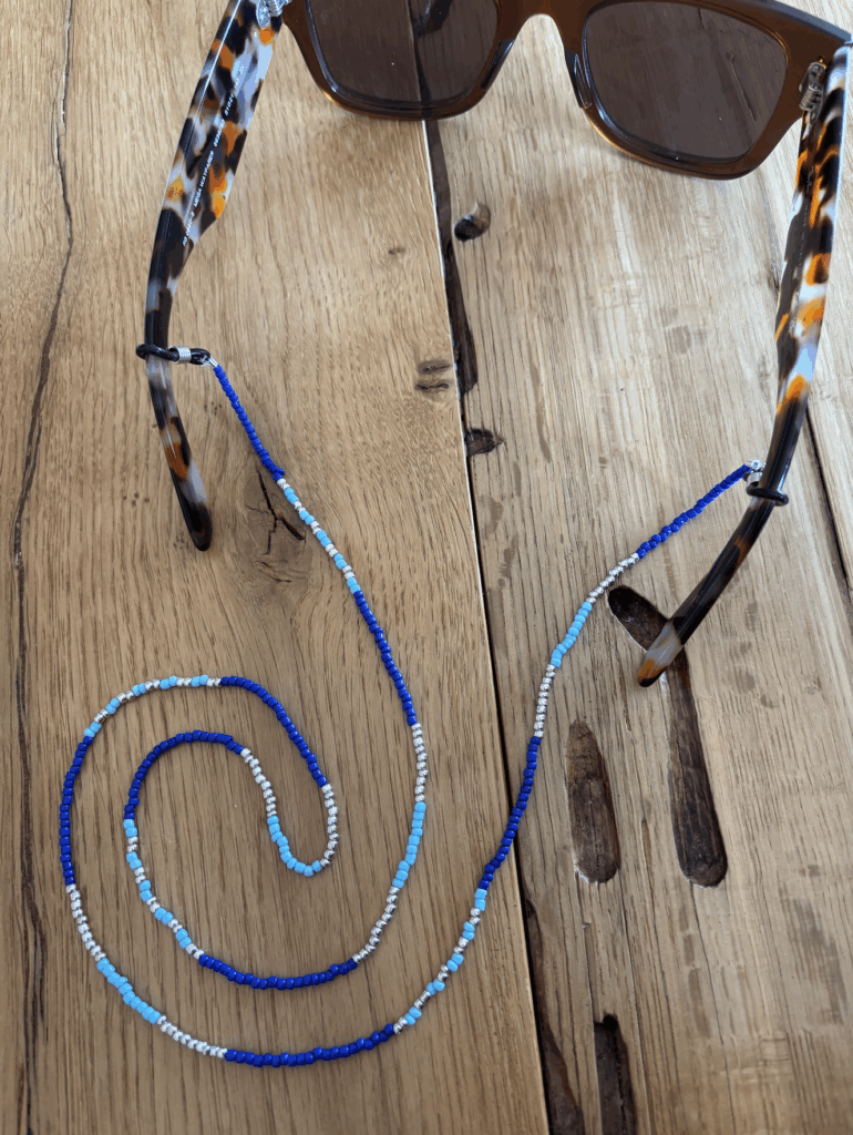 Handgefertigte Brillenbänder verbindet feine Perlenoptik mit zuverlässiger Funktion. Wie feiner Schmuck, bleibt aber kompromisslos praktisch, vom Coffee-Run bis zum Strandtag.